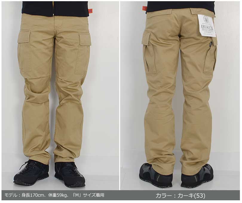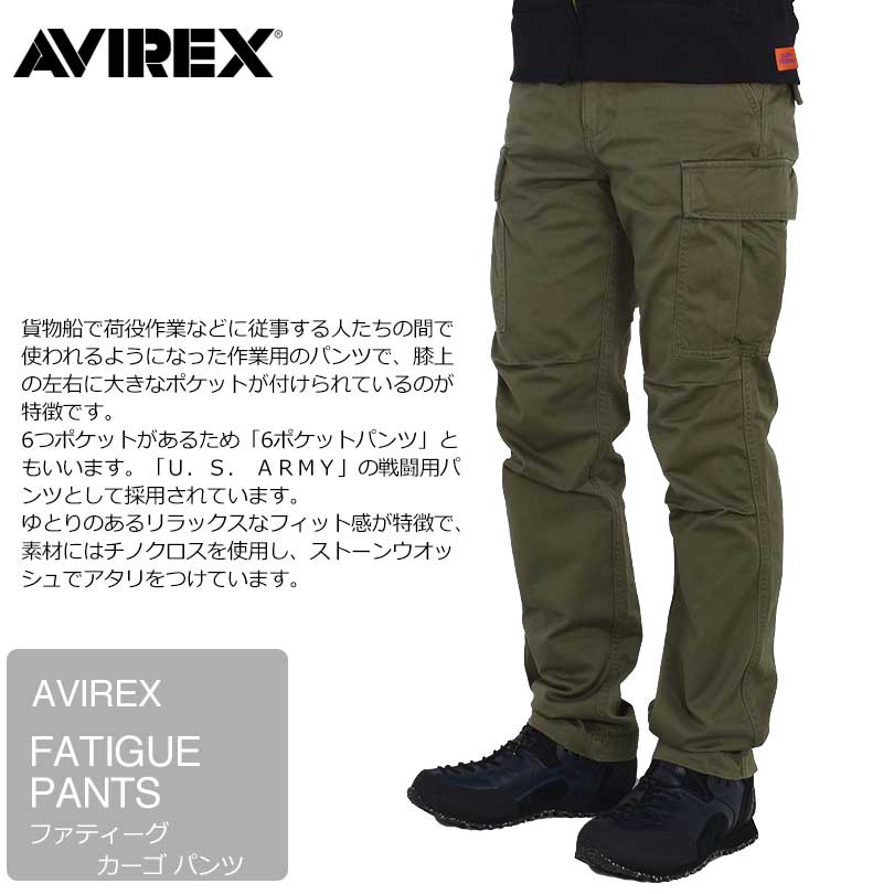 ■商品説明 AVIREX(アビレックス)の定番ラインの チノクロス生地のベーシックカーゴパンツ 厳しい基準のあるアメリカ空軍御用達の ブランドとして有名なAVIREX アメリカ本国はもちろん、日本でも高い人気のブランドです 貨物船で荷役作業などに従事する人たちの間で使われるようになった作業用のパンツで 膝上の左右に大きなポケットが付けられているのが特徴です。