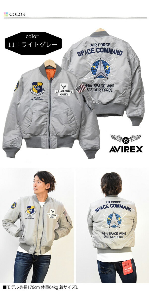 ギフト対応 AVIREX アヴィレックス MA-1 SPACE COMMAND AIR FORCE SPACE COMMAND=空軍宇宙軍団 (軍事衛星など宇宙関連の作戦を行う組織)を モチーフとした立体的な刺繍やアップリケを施し、 今季のテーマである"SPACE AGE"を表現するアイコニックなMA-1。