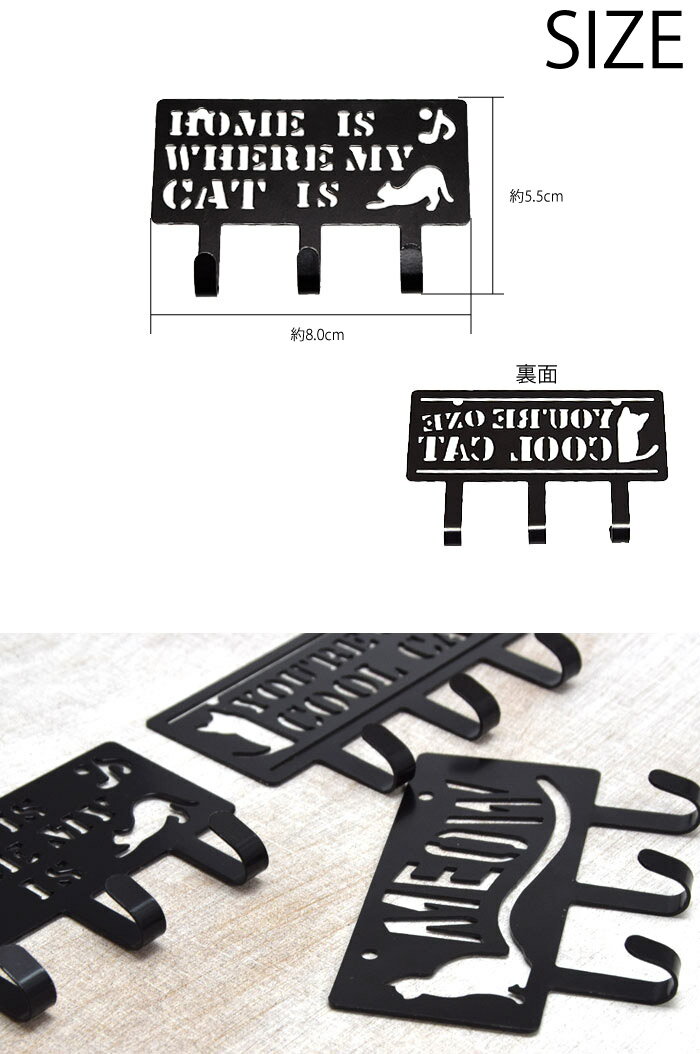 商品名 3連フック(猫デザイン) (AI-FK-007) STAFFコメント 癒される猫の表情をシルエットにしたデザイン♪